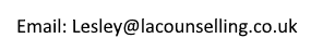 Hi, and welcome to LACounselling Ltd. My name is Lesley-Anne, I am a qualified and experienced integrative counsellor specialising in person centred therapy working with adults and young people (aged 16+).